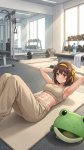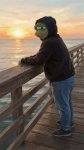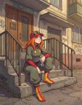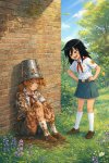Реквестую Харухи в расстегнутом костюме лягушки, которая стоит в солнечный день на улице в тени дерева и ест мороженое. Второй рукой она прижимает к боку голову костюма.