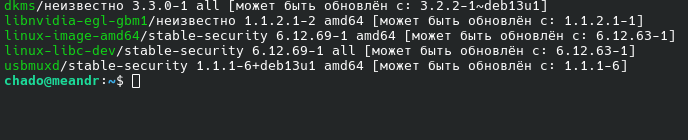 >>3693131 >>3693130 Поднимаю праву руку вверх и зачитываю: 1. Обновил дрова Нвидии, они встали 2. Вручную, через долфин, проверяя при этом лсом, смотрел и менял на права доступа. 3. Написал один раз sudo apt update / upgrade (посмотрел сейчас в history).
