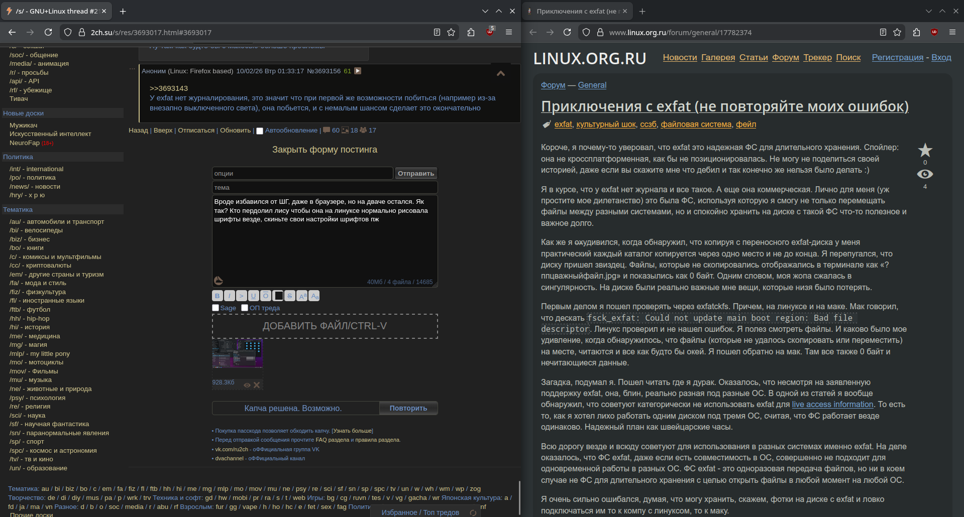 >2 миллиона лет эволюции >Не придумали нормальную файловую систему для перекрестного использования между видной и линуксом