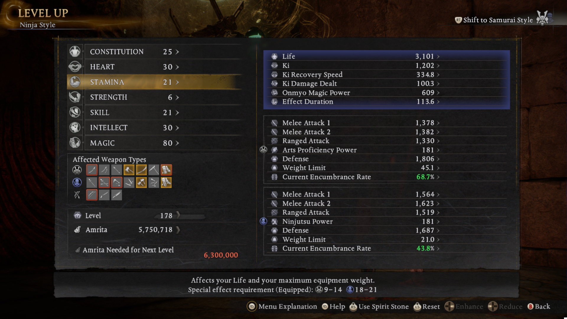 Ну и еще. В трёхе завезли возможность из коробки менять статы, от которых скейлится оружие. Для этого надо зайти к кузнецу, закалить его на +1, а потом уже оно появится в меню.