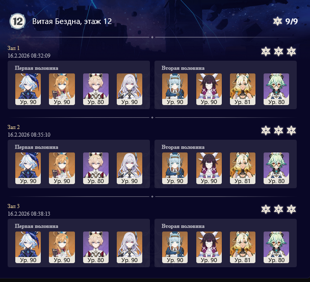 Хз, прошел бездну пачками: >Инеффа, Айно, Сукароза, Флинс с Коршуном >Навия с2р1, Фурина с6 Ключ, Колумбина сигна Акулы, Шилонен Задушился на 12-2 с жирничами которые еще и по кд пинали Навию, тк щитов кристаллизации нет. Босса коня снес на пох, он сожрал Гидро имунн Но в целом бездна неприятная, да