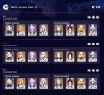 Айно С5 и без артов, Иллуга С2. Лошадь с мечом, поэтому крепкий щит нужен - Лань Янь С6. Арлекино с палкой, у Инеффы и Коломбины сигнатурки, созвездий ни у кого нет.