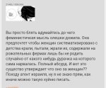 Вы просто блять вдумайтесь до чего феминистичкая мысль олешки дожила. Она предпочтет чтобы женщин систематизировано с детства крали, пытали, жрали их, содержали на рожательных фермах лишь бы не родить случайно от какого нибудь дурачка на которого сама нарвалась. Полный абсурд. И вот это существо утверждает что оно за женщин?? Походу агент израиля, ну я не знаю прям, как иначе можно такую хуйню писать.