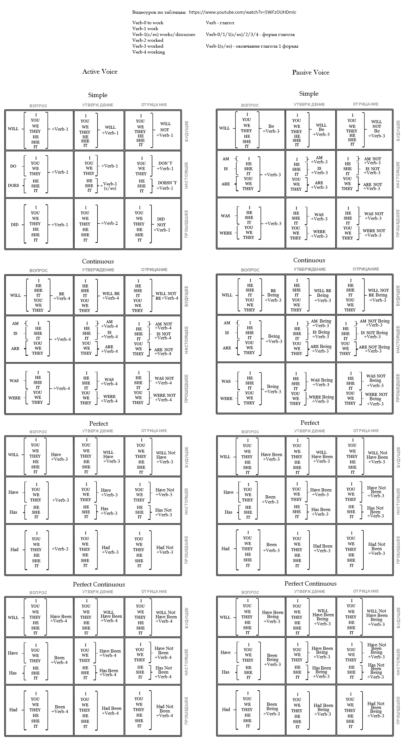 Таблицы времён для английского языка