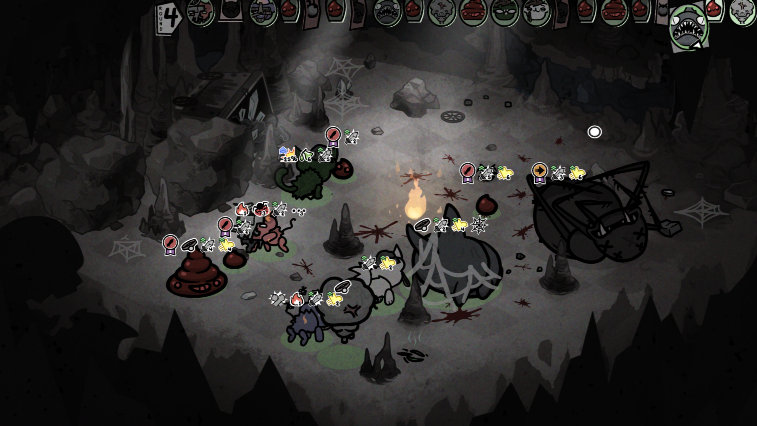 Не короче я ебал рандомгенератор местный. До этого был навык с чесоткой кота на шанс 50% со спавном блохи, хуй с ним что из 30 раз было всего две блохи. Сейчас в пещерах летучие мыши накладывают замешательство из-за которого 25% ебнуть по себе. 25 говорите? Да, у меня, бля, вся партия котов чуть не уехала в утиль, просто потому что ВСЕ удары коты хуячили по себе, спас проклятый паразит на танке, который при уроне спавнит дружественных личинок, которые и пытались убить сраных мышей подыхая от самоукусов.