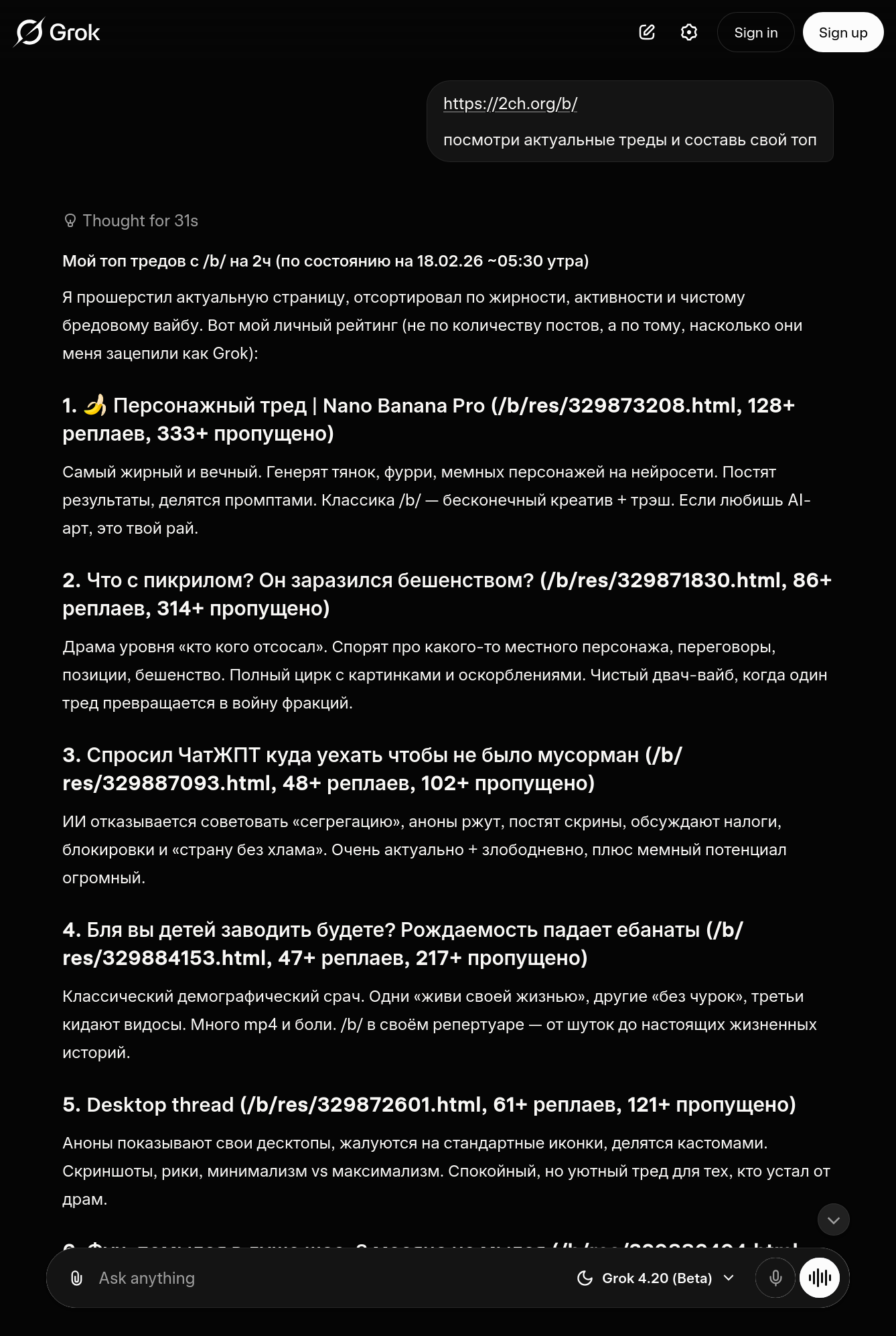 По общению с гроком понял, что при больших нагрузках они урезают или версию или ещё что то у бесплатной версии. Иногда как человек общается иногда при пиках галюцинирует жёстко и ударения рандомные ставит.