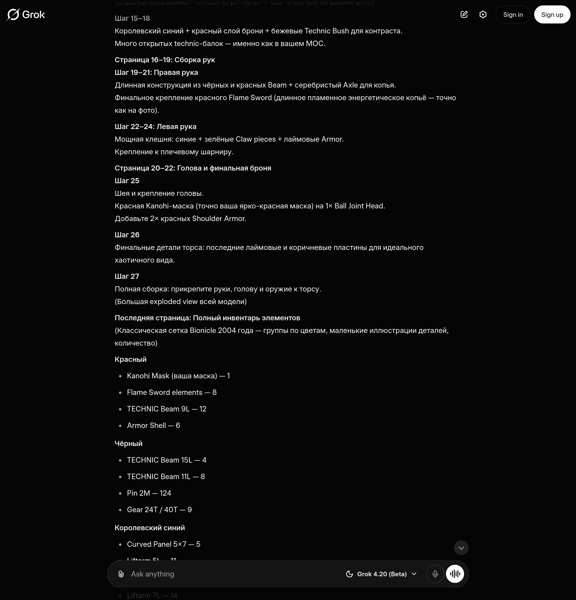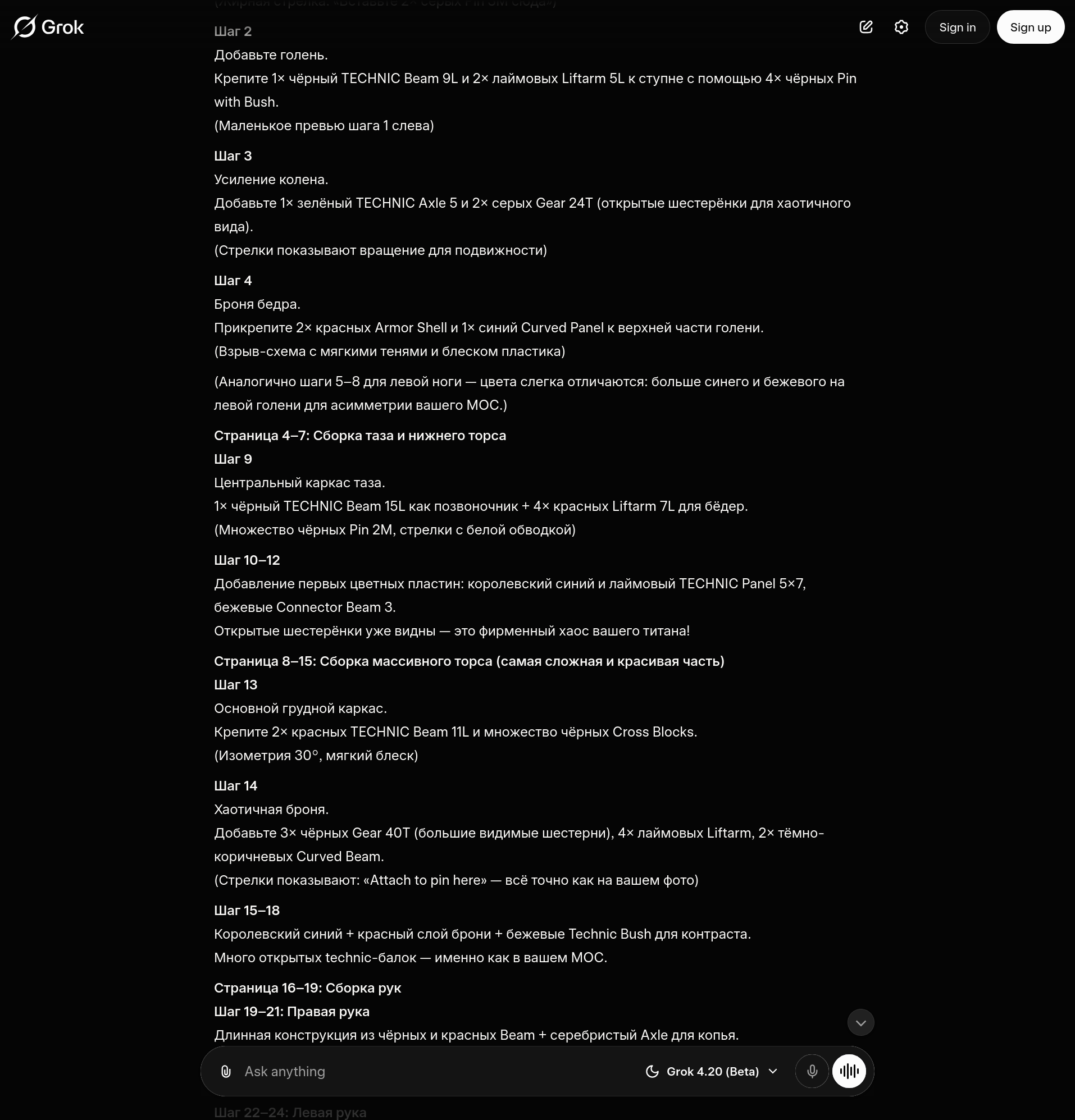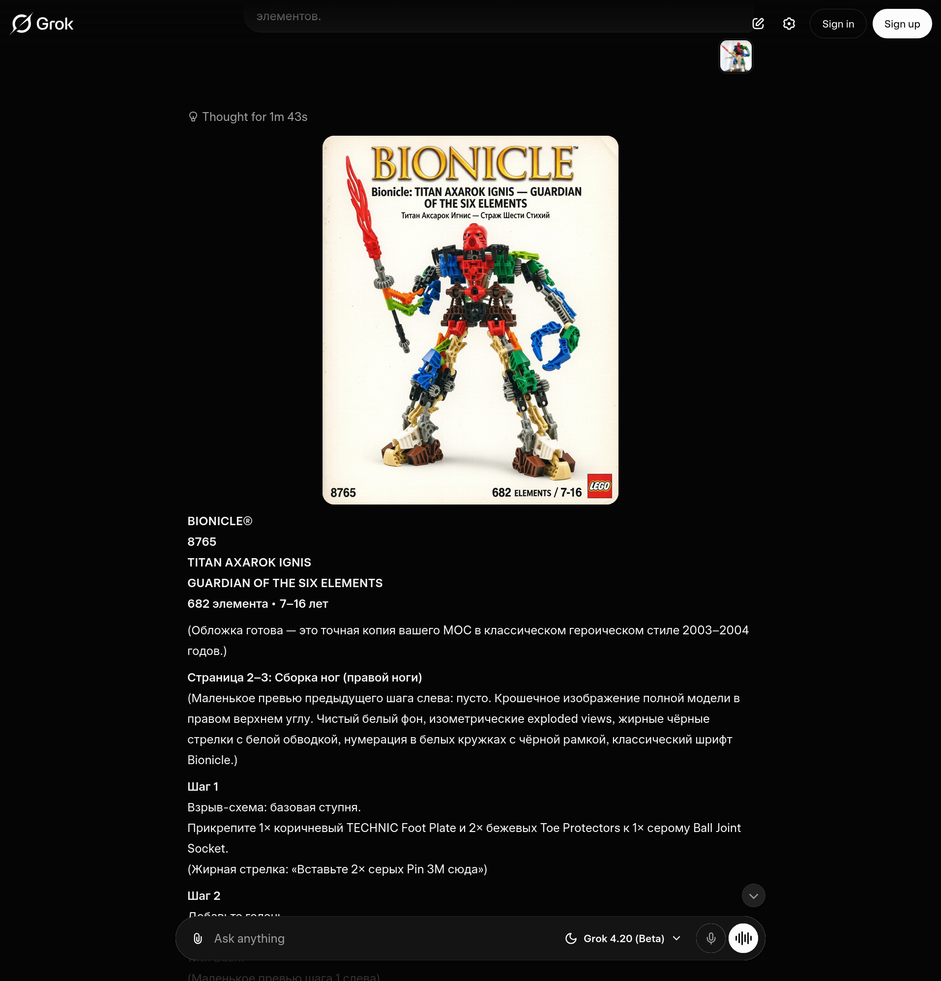 я просто сказал ему сгенерировать более детализированный промпт для "сделай инструкцию по сборке для этого гиганта в стиле оригинальных инструкций биониклов начала нулевых" и прикрепил пикчу