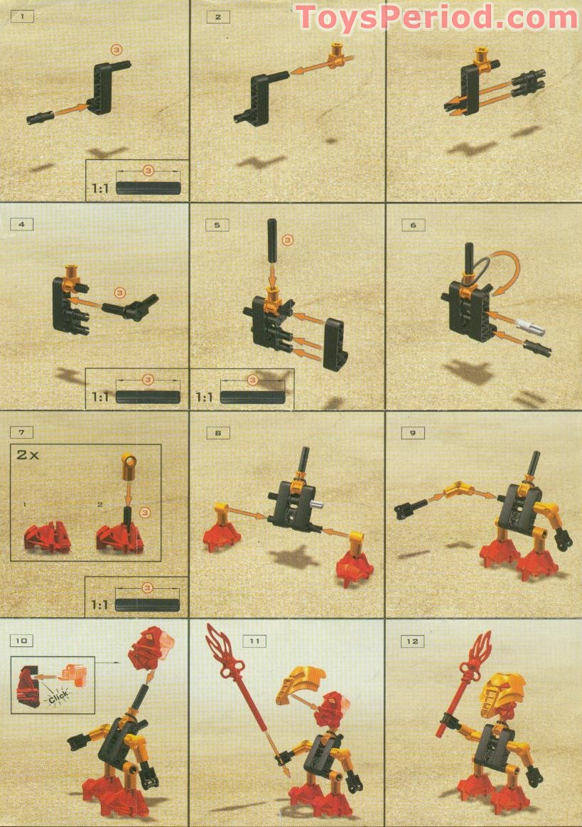 Нужно сделать инструкцию по сборке для этого гиганта в стиле оригинальных инструкций Биониклов начала нулевых, используя только пикрил фото