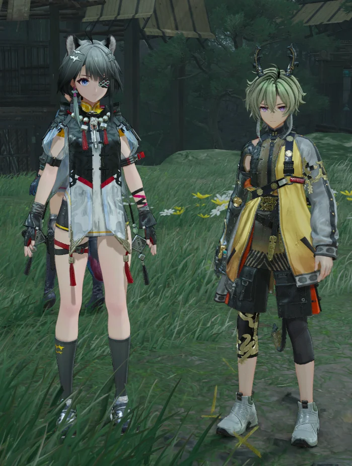 Правая (вторая картинка): 👗 Акцент на тело и силуэт (открытый живот, обтяг) 🎀 Дизайн кричащий, «сценический» 🔮 Много глянца, мало следов реального использования 🧠 Вайб: витрина / айдол / приманка баннера 🌍 Слабее читается связь с бытом мира