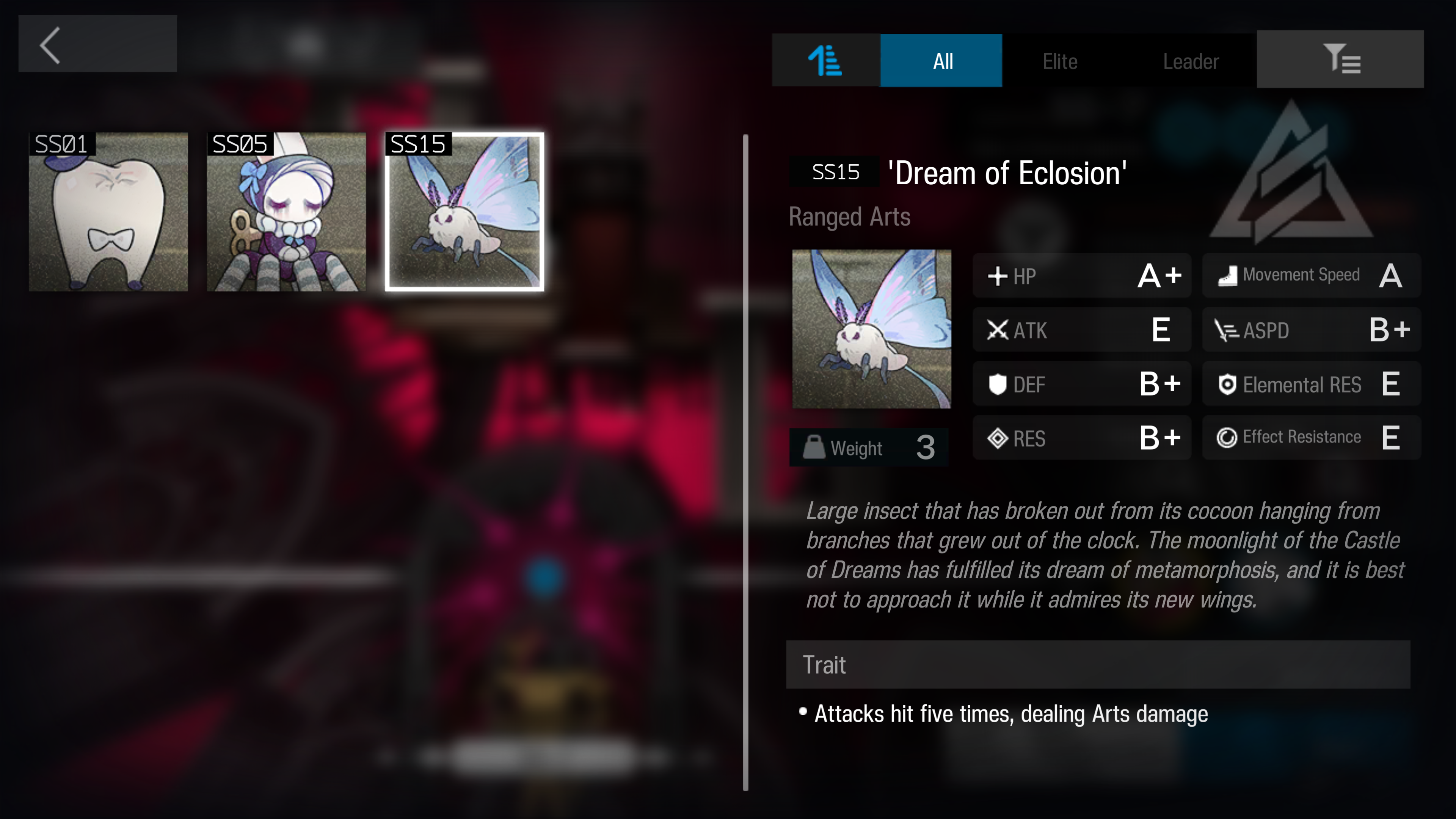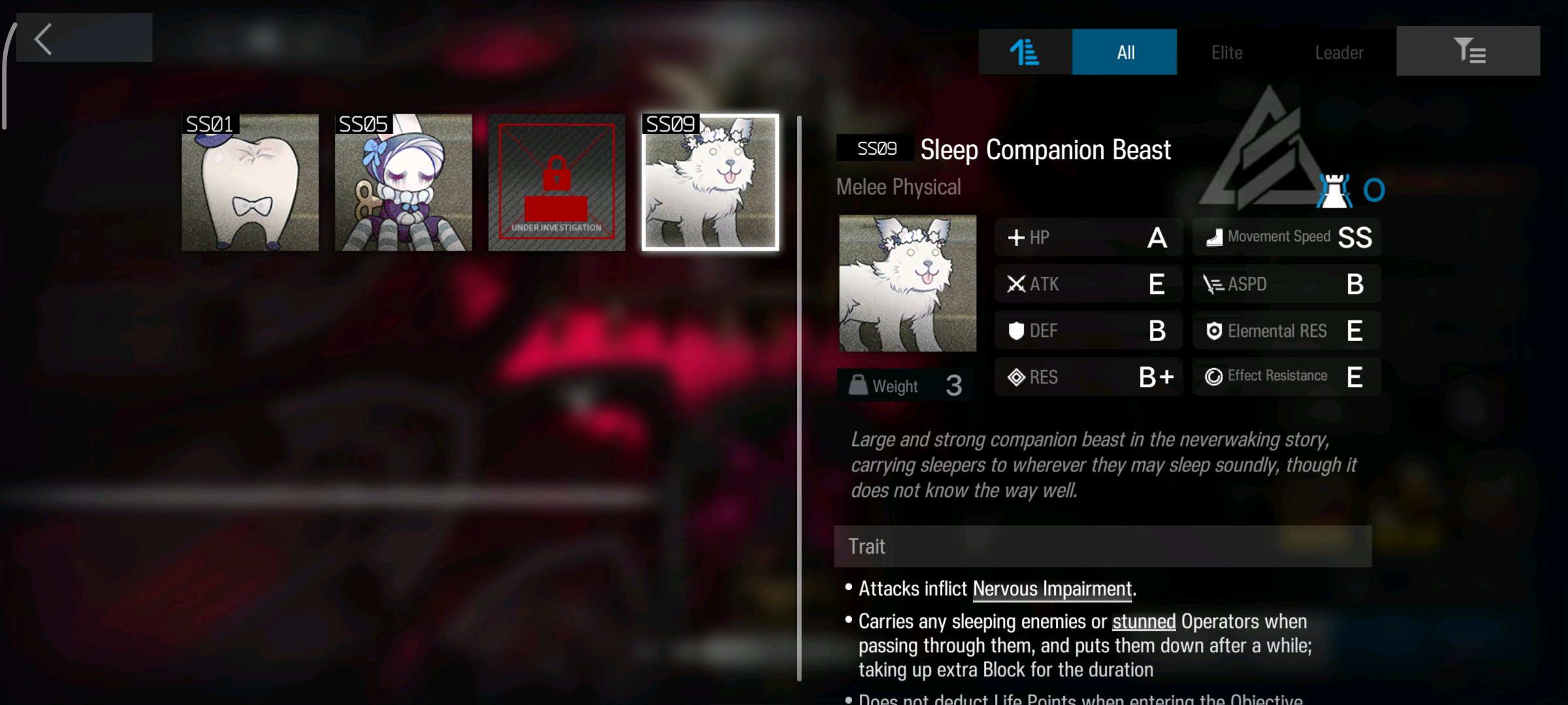•[Instant Wound] Deals high Physical damage to the Operator with the lowest Max HP on the field; If the target is defeated, their redeployment time is greatly increased; After hitting the same target three consecutive times, that target loses visibility
