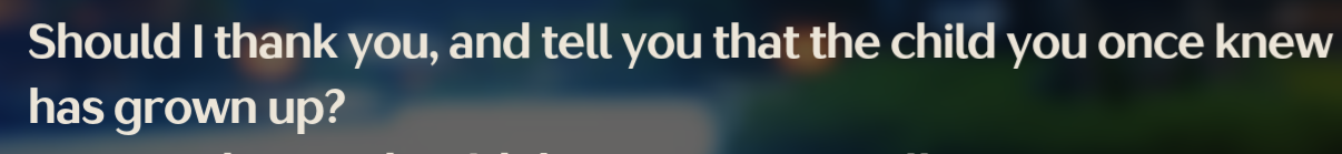>>6445369 Нет конечно. Она даже не дочь. Ее родаки отъебнули, и ее мелкую как-то спас Ровер, он потом присматривал за ней где-то год, потом покинул Лахайрой и стер себе память. Ессно за квест она ни разу Ровера папой не назвала, даже в детстве, как и он ее ни разу дочерью.