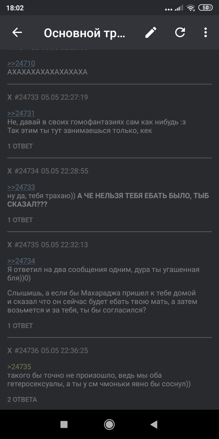 Не, ребята, он точно больной на голову. Либо умственно отсталый, либо шиз, либо школьник, которому не хватает внимания, потому что кроме мамки никого нет. Ставлю на смесь всего вышеперечисленного.