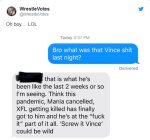 Как мы знаем, дела в жизни главы WWE складываются далеко не лучшим образом в последнее. Из-за пандемии он вынужден проводить все свои шоу, включая Рестлманию, которая ежегодно набирает несколько десятков тысяч зрителей, в пустом подготовительном центре, не так давно стало известно о банкротстве его футбольной лиги XFL, а также Винсу пришлось уволить десятки преданных работников, из-за чего он чувствовал себя несчастным.