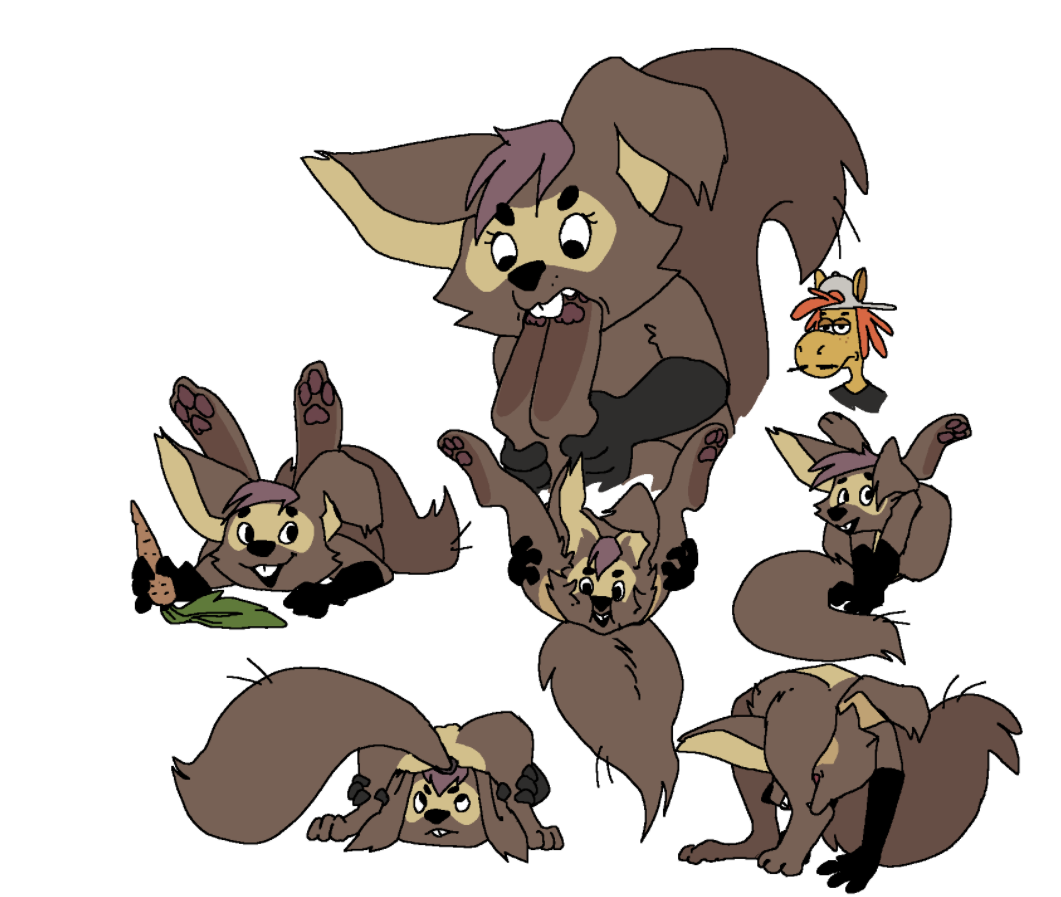 Нормас. Но на деле, Рыжелина не всегда беспечная. Порой в поиске социальной в плане общения работы, связанной с грызением дерева зубами (инструменты для неё не интересны). Раньше так создавала игрушки, болтая с старым бобром-начальником. Да тот ушёл в затворники, а фабрику пока заморозили.