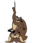 Реквестирую. Озорная рыжая бобриха Рыжелина (1), сидя на корточках, с цветным карандашом, вставленным в писю рисует иль подписывает таким образом что-то.