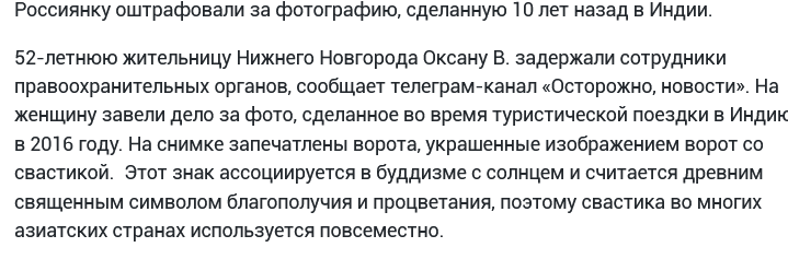 >>329936907 Если ДО принятия закона это было не нарушение, то привлечь не могут. Закон обратной силы не имеет. Но в данном случае вообще ПУК вышел, так как срок давности по административке до 1 года. Поэтому власть как обычно ТРАКТУЕТ так как ей удобно, чтобы всё равно тебя выебать "длящееся публичное распространение запрещённой символики". И похуй на то, что индуистская свастика и фашистская не одно и тоже и имеет культурное наследие. Тут только кавказцкам можно кинжалы носить и степашек РКНить.