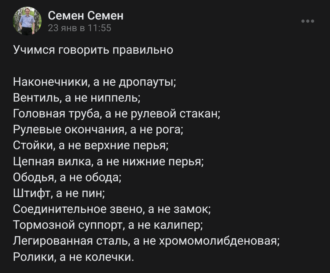 Дядько Матрасий базовый велачер, сборщик кастомов и перекатчик покатушко и ATB-треда, олджфаг велоча. Совершенно правильно он обоссывает панамного и тульского даунов.