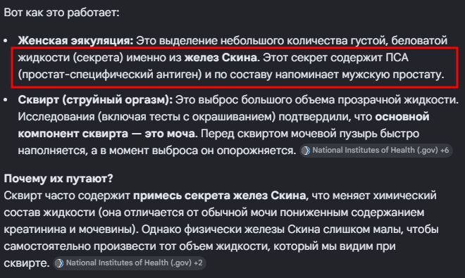 >>329939694 Хватит копиум включать Все эти железы не могут сквиртить, сквирт это в основном моча на 99% ИИ обучен на разных данных, медицинской литературе в том числе, а не на како-то обычном мнении