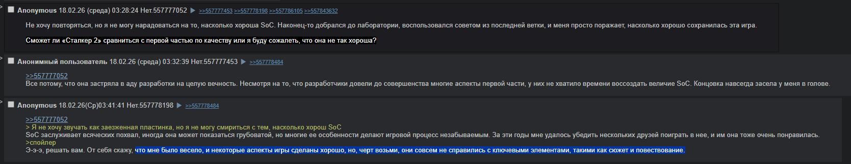 >скроллю тред по сталкеру на дваче >реально обсуждают оригинальные игры по фуллу, праведно хейтят слопер 2 >даже разные каверы Dirge for the Planet перетирают >чекаю /sg/ >слоп