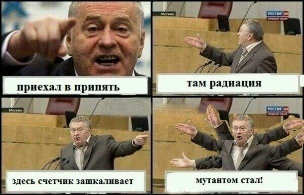 Два сталкера: - Ты с каждым днём всё больше становишься похож на алкаша. - Это почему же? - Да у тебя руки трясутся, когда ты ведро с водкой ко рту подносишь!