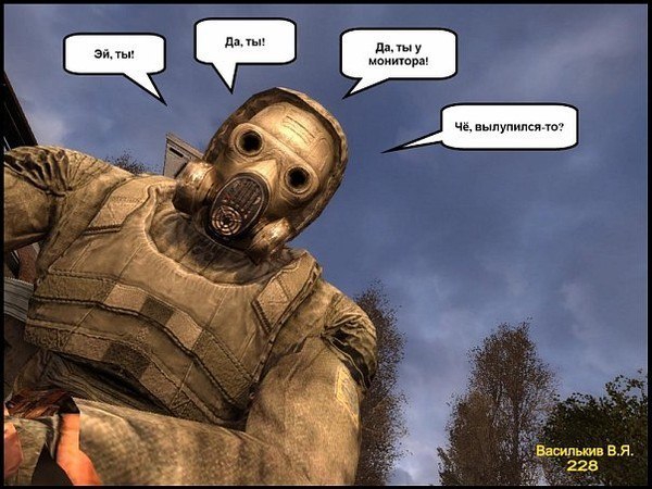 Сидит сталкер, держит в руках артефакт и тыкает в него пальцем, а палец сквозь него проходит. Подходит к нему второй и спрашивает: - Ты чё делаешь? - Да вот понять не могу, чё артефакт делает. Второй сталкер принюхался и говорит: - Господи, да это ж хавнооо!!!