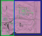 На первом скриншоте вы можете видеть две цветные рамки - в зеленой располагается часть локации, основанная на концепции оригинала, в то время как в синей - новая, значительно расширяющая локацию, территория.