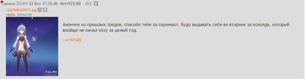 >>6445906 Насколько сильно нужно было порвать жопу, чтобы набрать ульт на козе до выхода эмблемы? Сколько патчей нужно было ждать, чтобы получить альтернативу Син Цю? Как сильно нужно было изъебнуться, чтобы ультануть за Лизу, даже с учётом "бага"? >>6445897 >>6445952 >>6445990 Речь про тот самый ламповый геншин времён релиза-Инадзумы, а не современный околонатлановский, и небольшое количество персонажей никак не влияло на базу игры - реакции. Никто не играл на суперкудахтовой Аяке, никто не собирал Ху Тао в перегрузку, никто не билдил Итто в шаттер. Нет, не потому что "просто чемпика не было", а потому что это хуета блядь. Да, вы могли повыёбываться и раздать стиля на собственной кринж-пачке, но игра вас за это абсолютно никак не поощряла, из-за чего вы либо даже не пытались придумать что-то своё, либо закономерно возвращались к метовой или околометовой параше с неизменным ядром и вставляли кубики в квадратики. Единственное что поменялось, так это теперь чуть более открыто говорят о необходимости тех или иных чемпиков, но вы не понимаете или не хотите понимать, что так было (и будет) всегда. А ещё вы попросту устали от геншина и находитесь в стадии "раньшебылолучше", вот и всё.