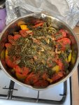На ближайшие пять дней, не сказать чтобы вкусно, но вкусно... Свинина в красном вине, пюре - картошка моркошка и заготовленые с осени помидорки с перцами из морозилки, они чуть не бесплатные в октябре были