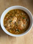 >>765901 >не как у Сталика Типа не из матери сварил? Это хорошо, но получилось не харчо, а томатный супчик. Ключевые вкусовые ноты харчо это: грецкий орех (не вижу на фото), много сильно зажаренного лука (вижу у тебя мало лука и вареного), кислота от ткемали (тут по фото не определю, но скорее нет, ткемали бы слегка затемнил цвет).