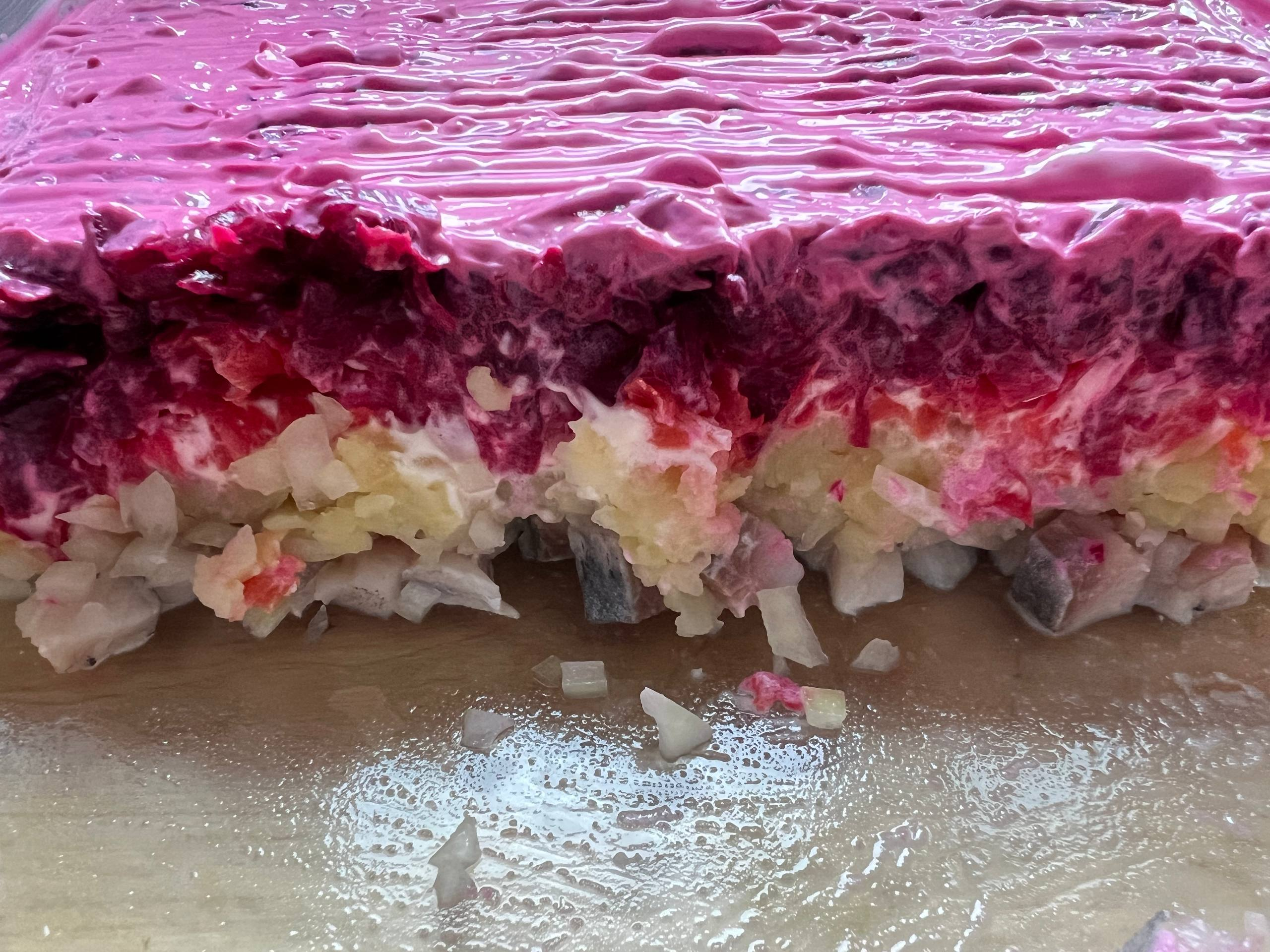 Шубу с вечера заготовил, сегодня обедал. Первый раз готовил шубу без яиц: сельдь - лук - картошка - морковь - свекла. Охуенно, таким господь этот салат и задумал, пока советские хозяюшки не испортили.