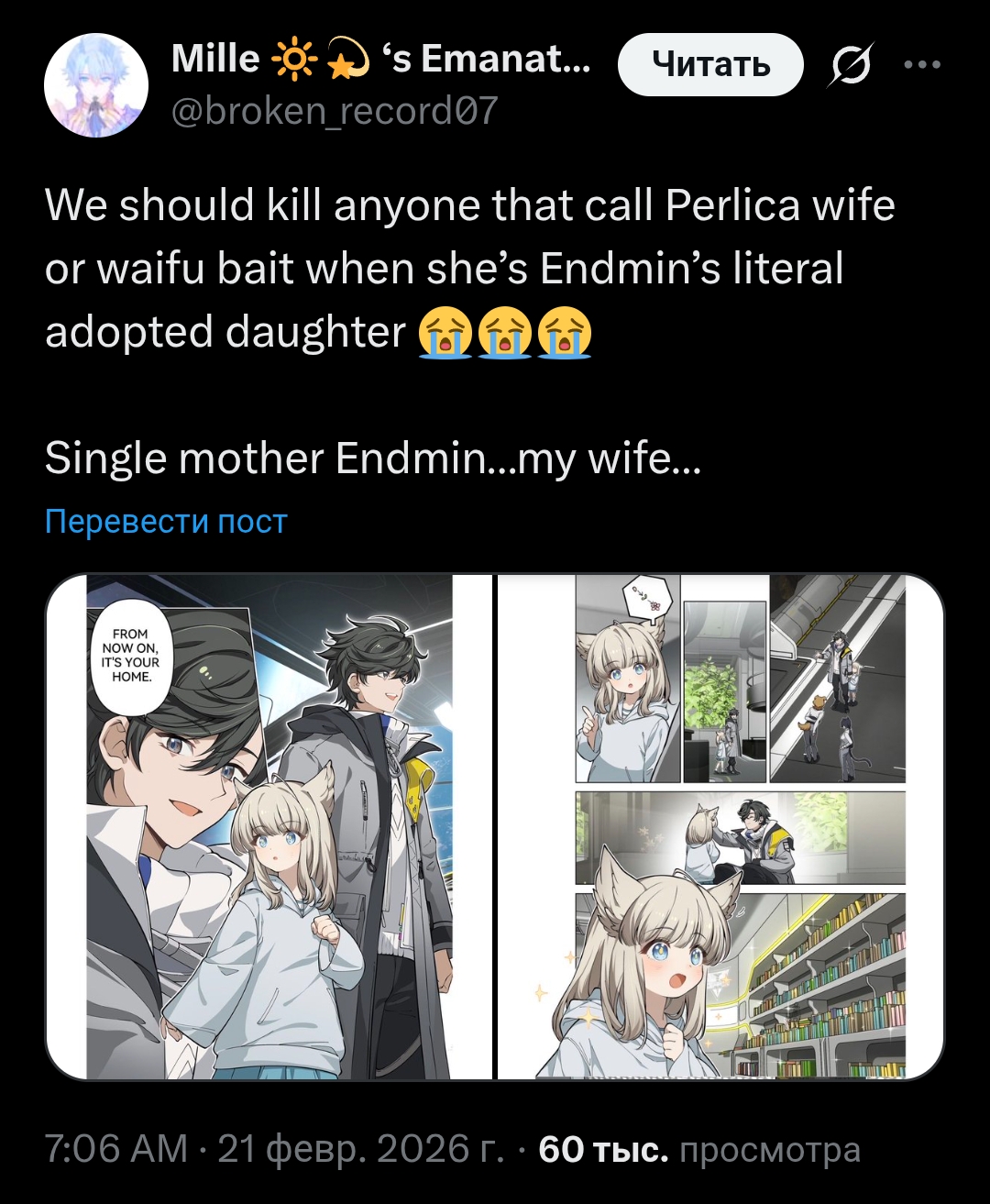 >>6447501 Мечты у нее из официальной анимации чисто как о родителе и в последнем письме называет себя наследницей. Кумерить можешь как угодно, она не реальный человек, но лорно это приемная дочь с обоих концов.