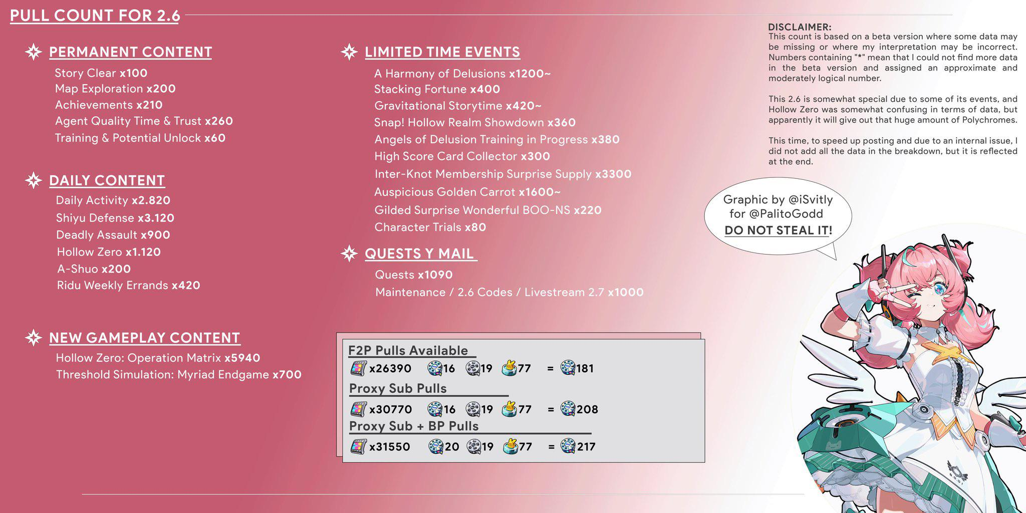 >>6458967 В патч в среднем 100 круток. Бывает 80, бывает 120, в этот раз больше, чем обычно положили, но следующий патч должен быт ьмаленьким. Персонаж в среднем падает за 80 круток, сигна за 40. Плотно играющие обычно регулярно получают персонажей, а если заносить, то можно обоих. Активностей стало больше, этот патч прямо вообще плотный, но нужно понимать, делать контент с такой же скорсотью с какой ты его проходишь разраб не может.