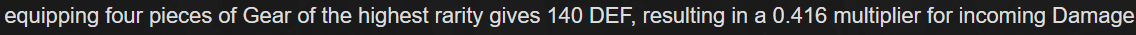 Забавно как AGI/INT вообще нахрен не нужны если у тебя от них атака не скейлится. Задумался о защите и как её скейлить. Лезу в вики. Золотой сет (DEF) - 0.416 DR (damage reduction) дефолтное AGI/INT на 100 = 0.08 DR, и всего 0.496 DR AGI/INT на 400 = 0.28 DR, и всего 0.696 DR