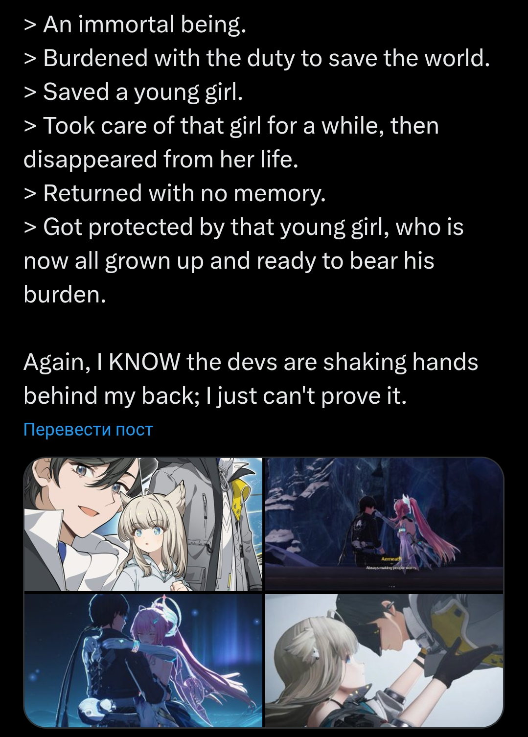 >ну короч мои любимые игры сдохли, потому что мы неплатежеспособное поколение говна, а еще я историю придумал про зумеров, поэтому геншин говно, воооть А самое смешное, что это тип реально верит, что написал пиздатый пост, где разъебал целое поколение.