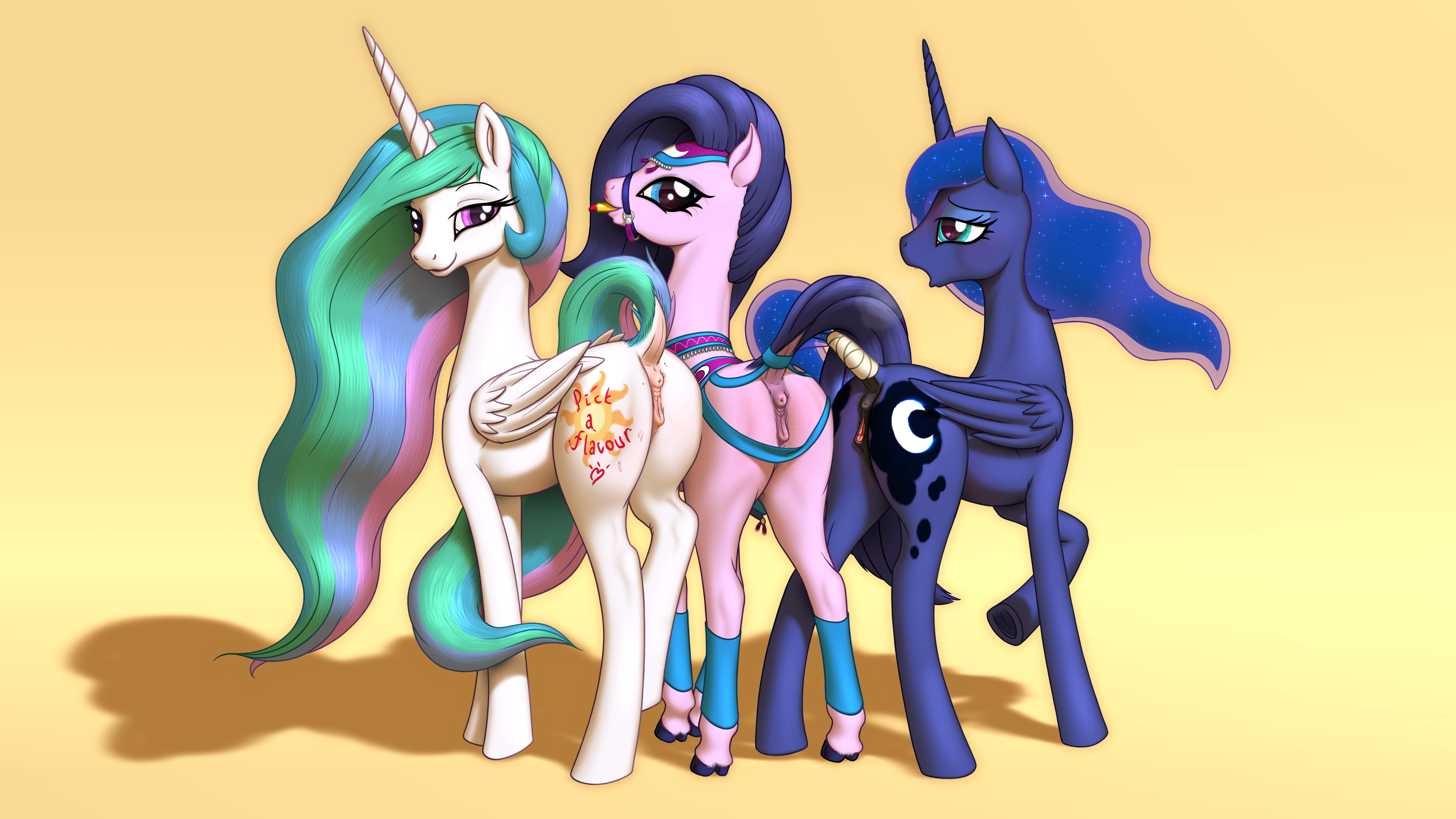 >>330031277 Так, напоминаю маленькому людоёбу базу. Пони - это лошади. Их задумывали лошадьми и весь образ как их мира так и их самих должен быть по-лошадиному узнаваем. У них лошадиное тело и лошадиная петелька, а анус пончиком. Срут они под себя и человеческой речи даже в теории знать не могут, ибо живут в совсем другой звёздной системе, с людьми никогда не пересекались. Сериал просто перевели с лошадиного ржания на английский, также как например с английского переводят потом на русский. Лолечки - это конечно прекрасно, я тоже на них дрочу, но вот МЛП всёже специализируется на покрытии иного конкретного фетиша - на сексуальных лошадиных крупчиках. Не надо сюда своё фурри и аниме замешивать, я за чистоту понячьего коньтента.