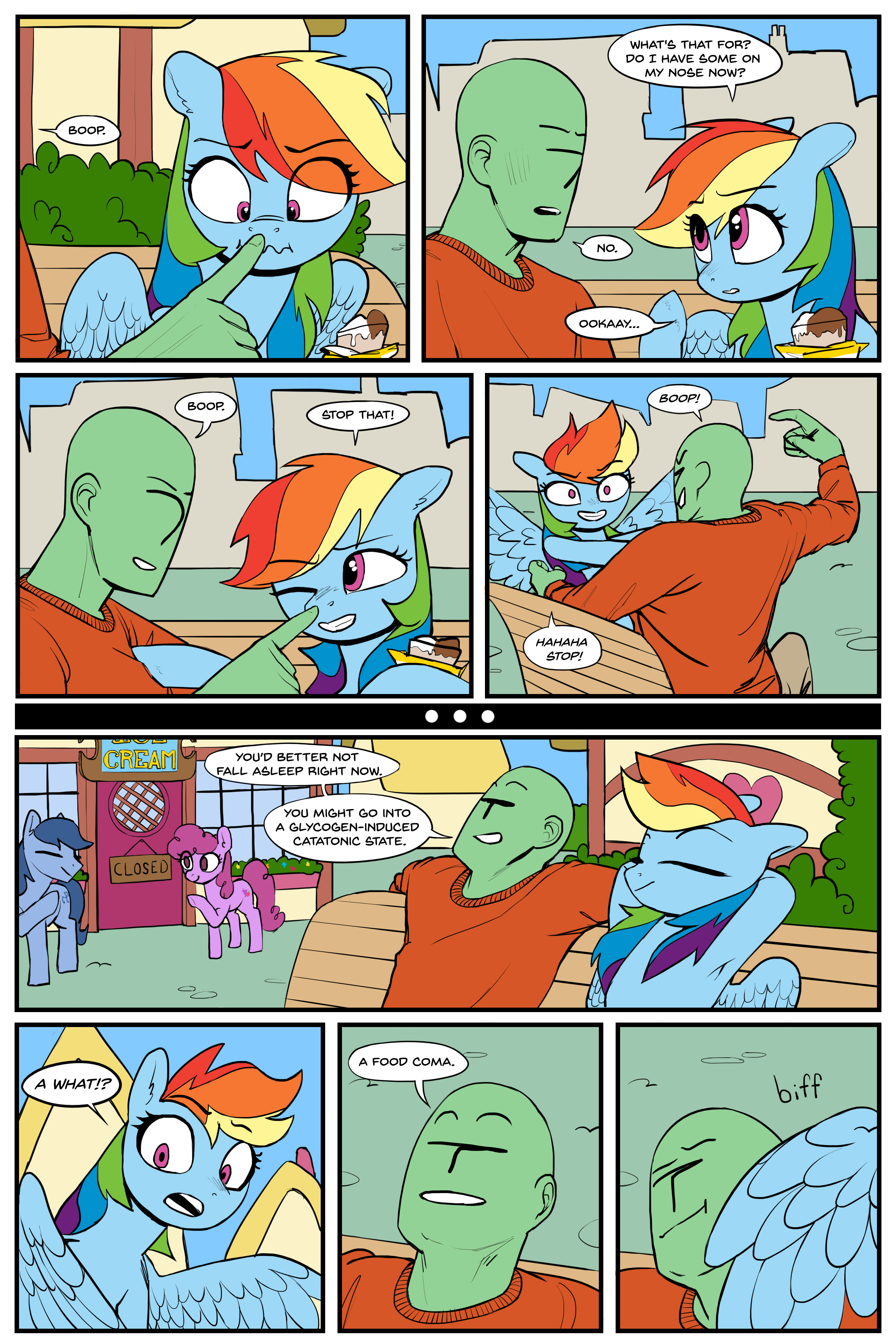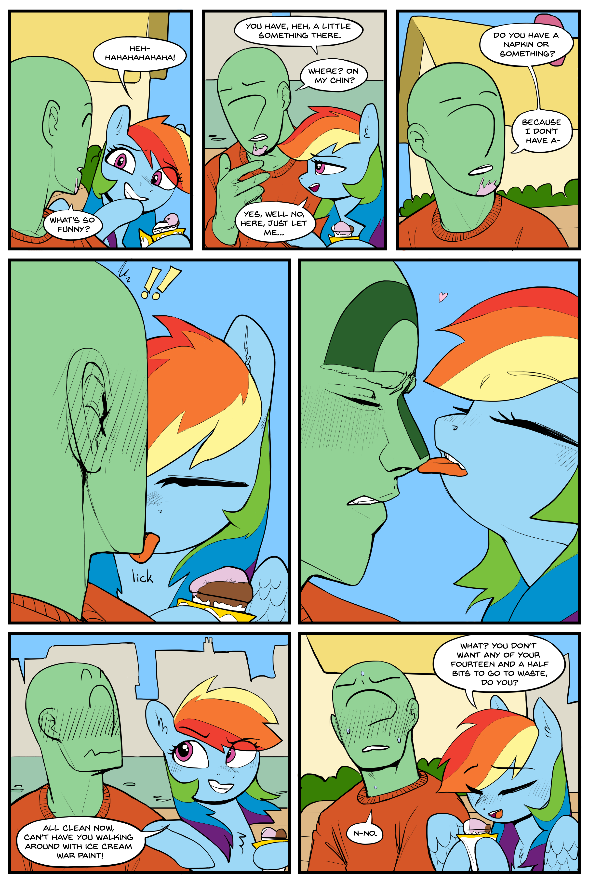 Забавно, что идеализированные "совсемникаклюди" лашатки из МЛП существуют только у зоошиза в голове, а в самом сериале у них регулярно всякие тёрки и споры друг с другом, прямо как у реальных людей. То есть по факту человекоподобные пони это как раз канон, а маняфантазии зоодебика нет.