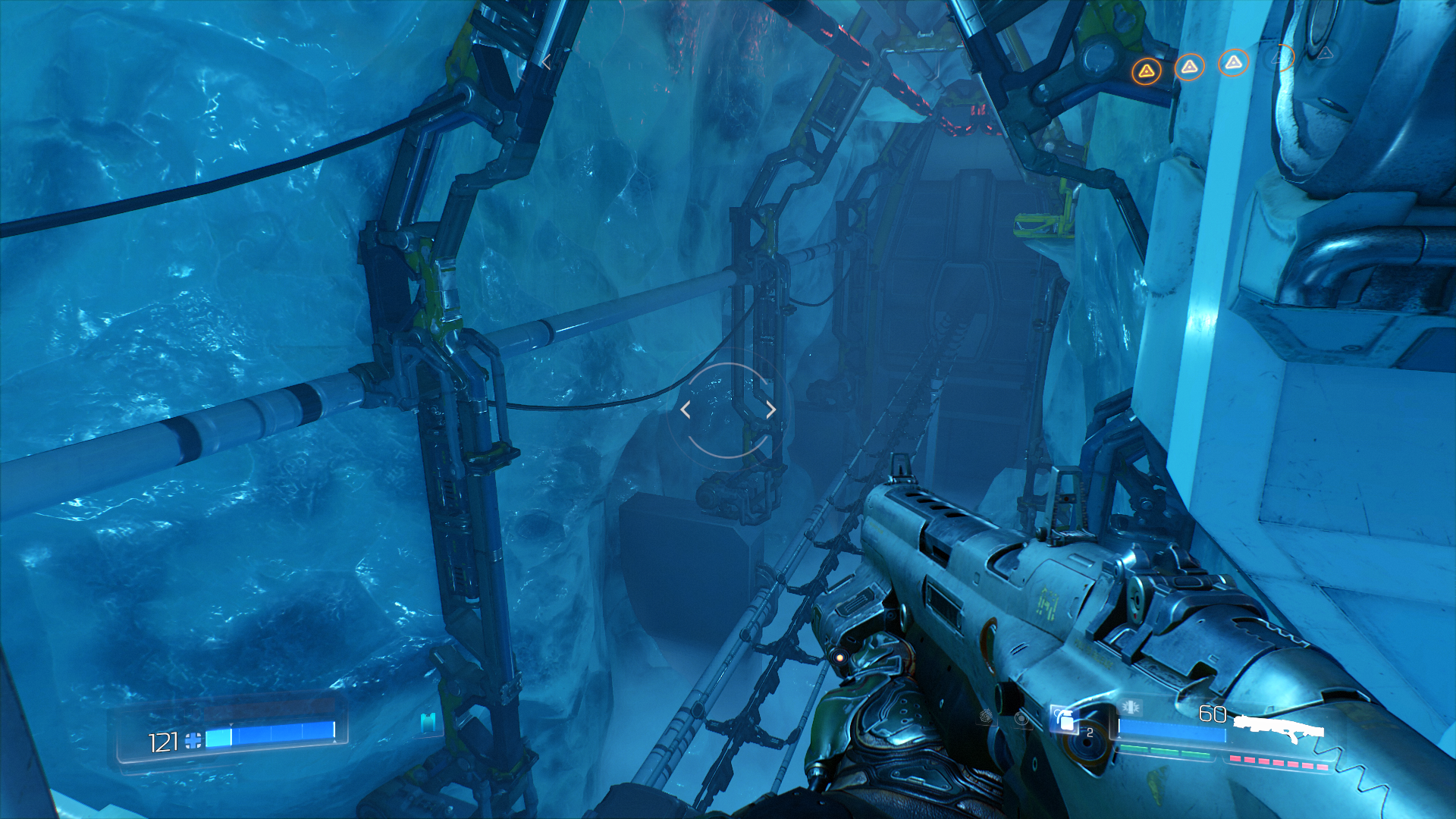 Интересный у них там декор. В конце уровня вылез босс хилой наружности, но при этом ухитрился четыре раза меня уработать, прежде чем я ему навалял, потратив при этом весь заряд ракет, пулемёта и BFG. И тут сразу же вылезло два босса такой же наружности. Вторая фаза, бля. Я уж думал, пиздец бесповоротный, можно и не трепыхаться, но нет, оба легли без проблем, с первого раза, от одного только Гаусса. Какая-то странная вторая фаза, обычно она бывает сложнее. Да и хуй с ним, Горнило у меня, выродкам осталось жить два уровня. Надо немного передохнуть.