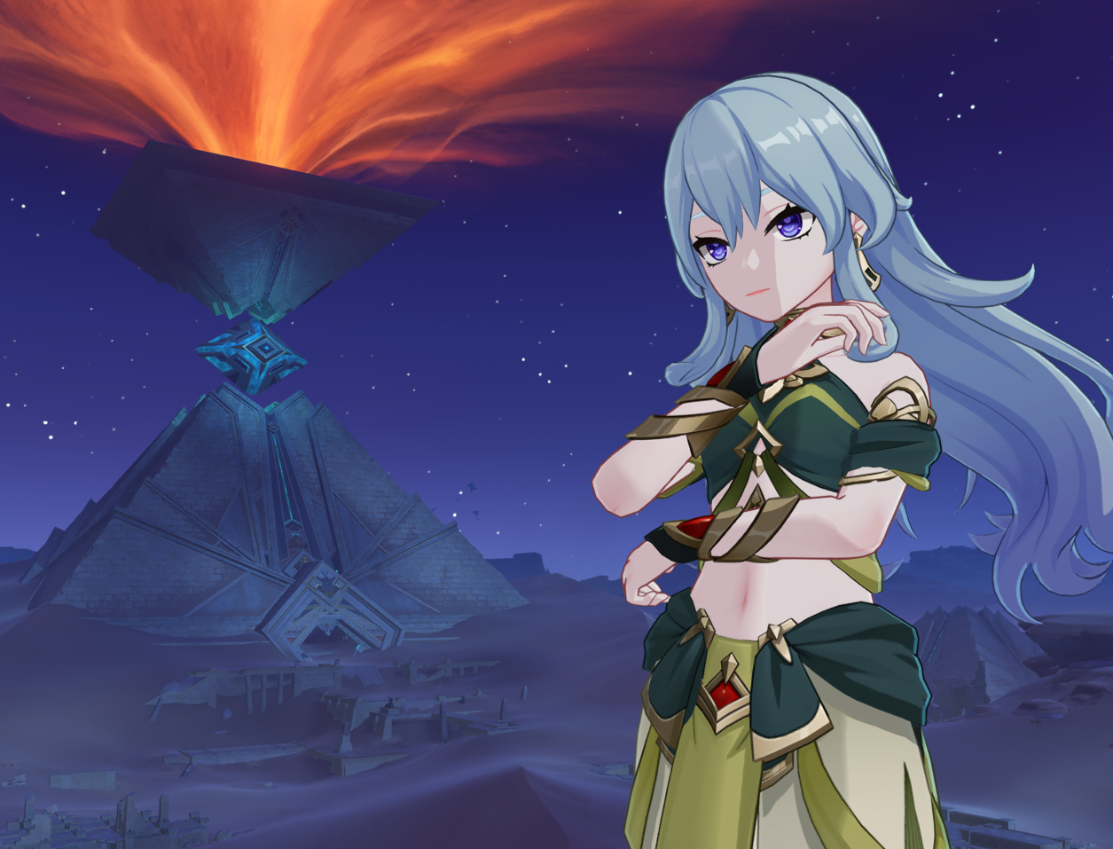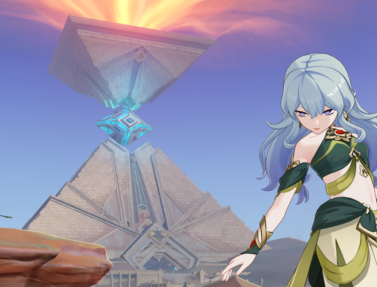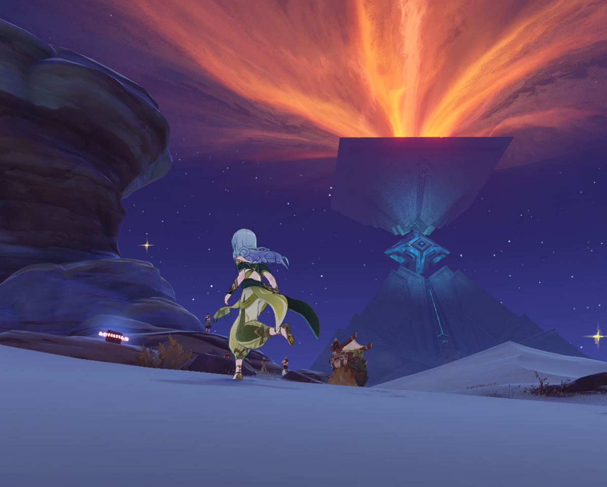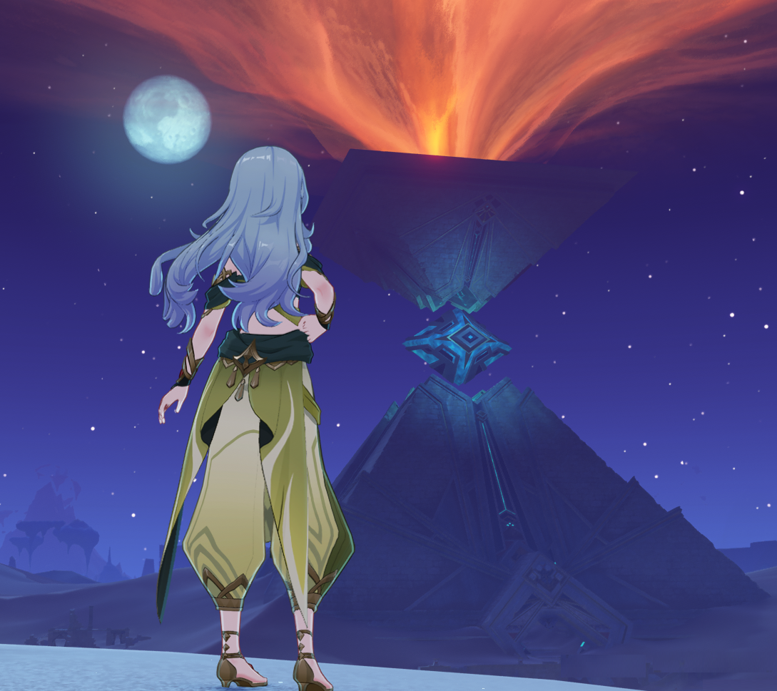 В треде писали, что Пирамида пропадёт после квеста. Решил вот пофоткаться на её фоне, пока она не исчезла. Красивая всё таки. Как и та пустынная дыра запечатанная в квесте Соруши. Изначально она выглядела куда атмосферней, чем та цветущая поляна после прохождения квеста.