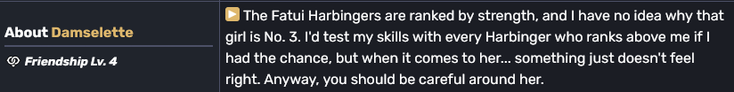И вот тизер Нод Края. Клумба ЗА КАДРОМ покинула Фатуи. Мы встречаем её уже как дезертира и нам её презентуют как совершенно оторванного от Фатуи персонажа, уделяя внимание лишь аспекту лунной богини, будто бы её нахождение в Фатуи никогда не было важно. Это прикол такой был, да. И мы выясняем, что она буквально нихуя не делала все... сотни(?) лет нахождения в Снежной, ей не поручали никаких заданий, она просто пела, хавала тортики и ходила в большой театр с подругами бесплатно. Окей, круто. Нахуя её вообще было делать Предвестником, если по итогу нам дают просто богиню луны, которая никогда могла и не быть связанной с Фатуи, это часть её биографии полна дыр. Даже хронология по пизде идёт. Вот она вроде как там задолго до рождения Лаумы, ну сотня лет точно, даже больше скорее всего, её первым другом был Дотторе, но она говорит, что быстро от него устала. Быстро. При том, что в дневнике Сандроне говорится, что они поссорились где-то перед Инадзумой. Охуеть она эстонка. Её другими друзьями были Сандроне и Арлекино. И если к Сандроне вопросов мало, она в Фатуи минимум лет 400, то вот с Арлекино вопросы имеются, ибо она там всего лет 10, но Клумба о ней так говорит, будто они закадычные подруги много лет, а вот Крукабену, которая занимала пост Арлекино гораздо дольше, не упоминает вообще никак. Торт оказывается регулярно с ней на чаепития гонял. Чаепития ещё и Сандроне в лор насрали, потому что Арлекино в своих репликах упоминает, что кукла ей не интересна, а теперь оказывается у них близкие дружеские отношения и они часто видятся. И куча вот такой вот мелочи, которая полностью ломает веру в реальность происходящего.