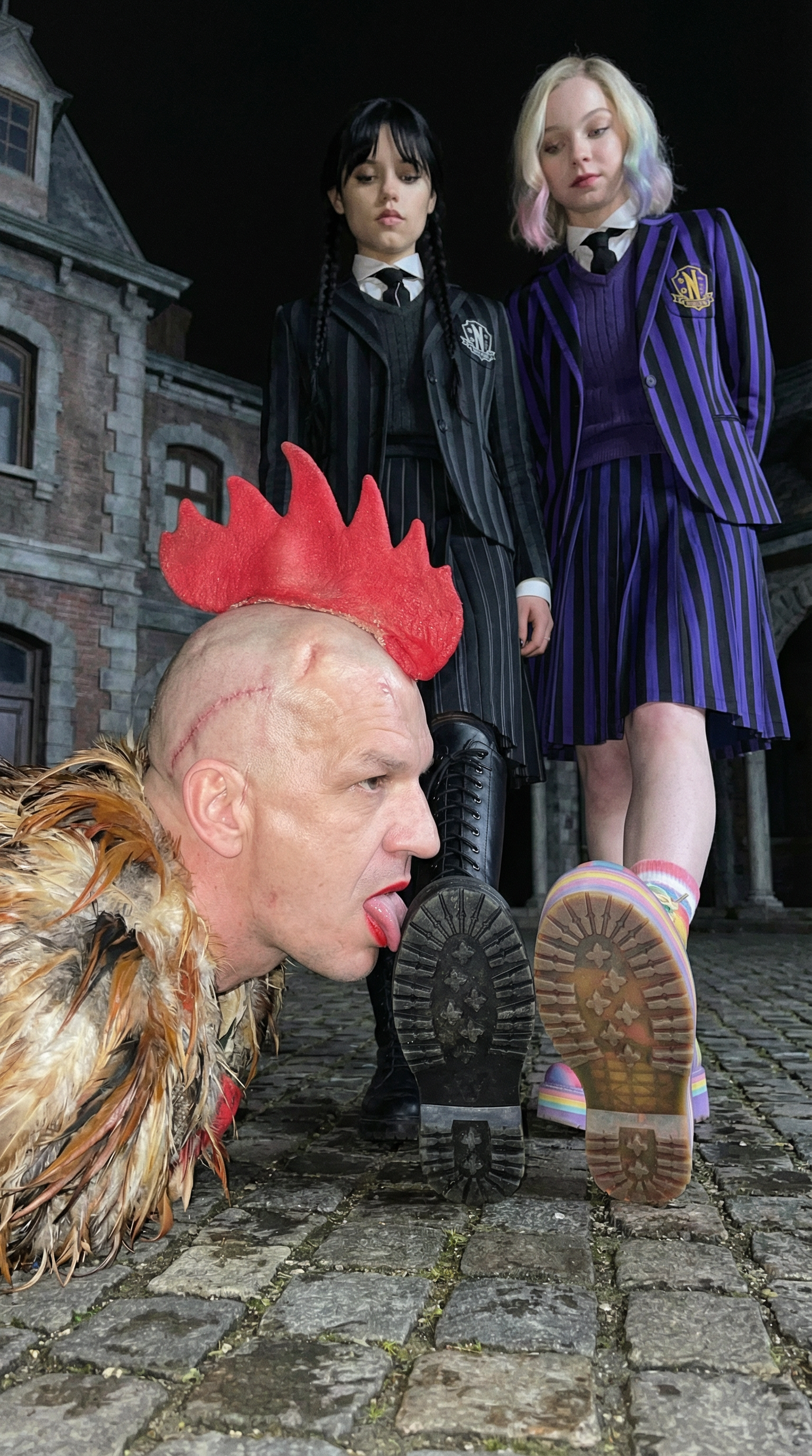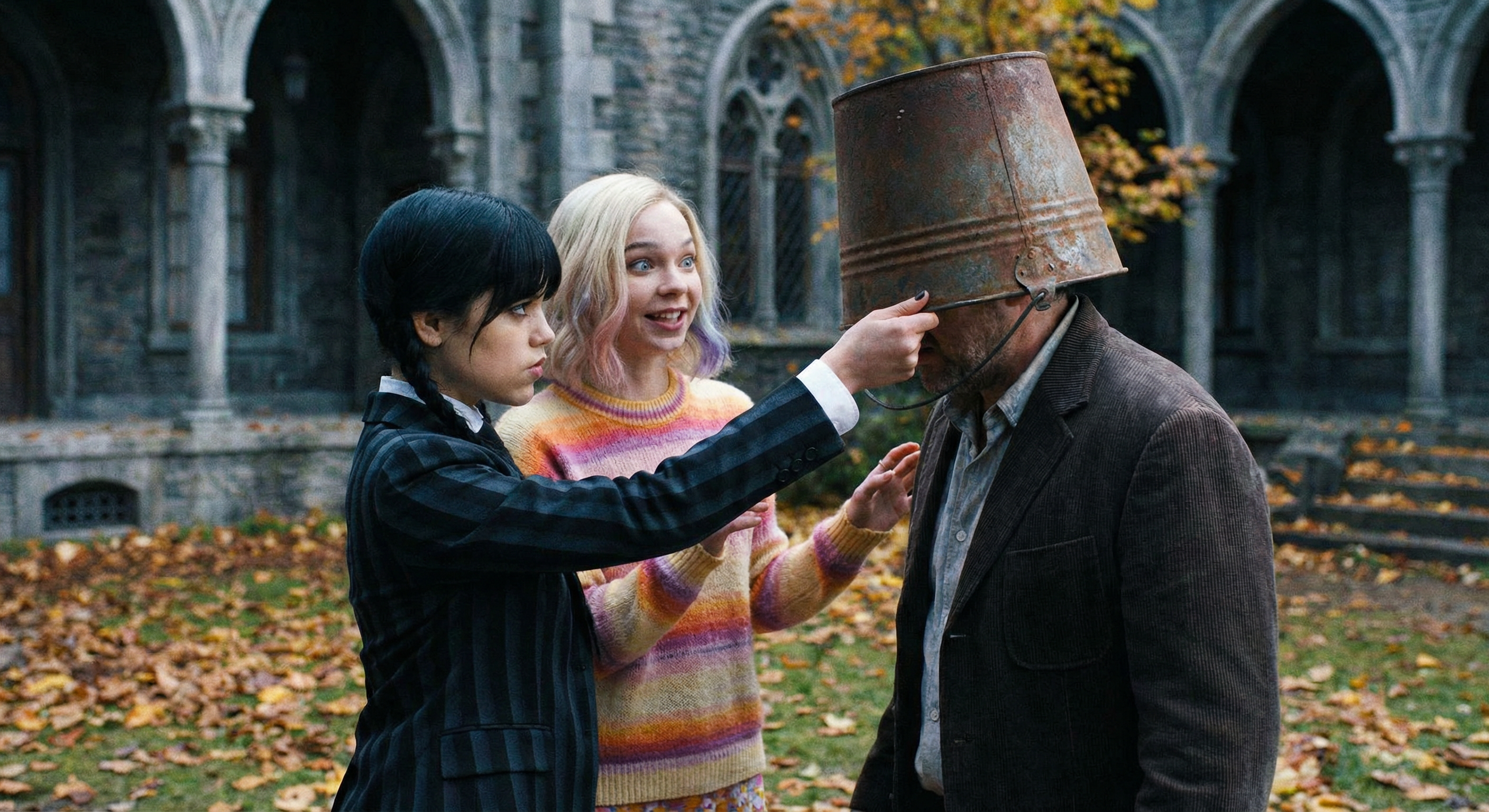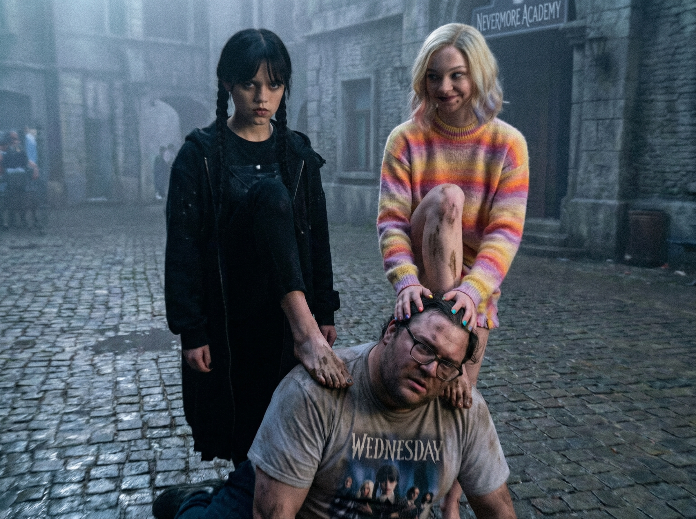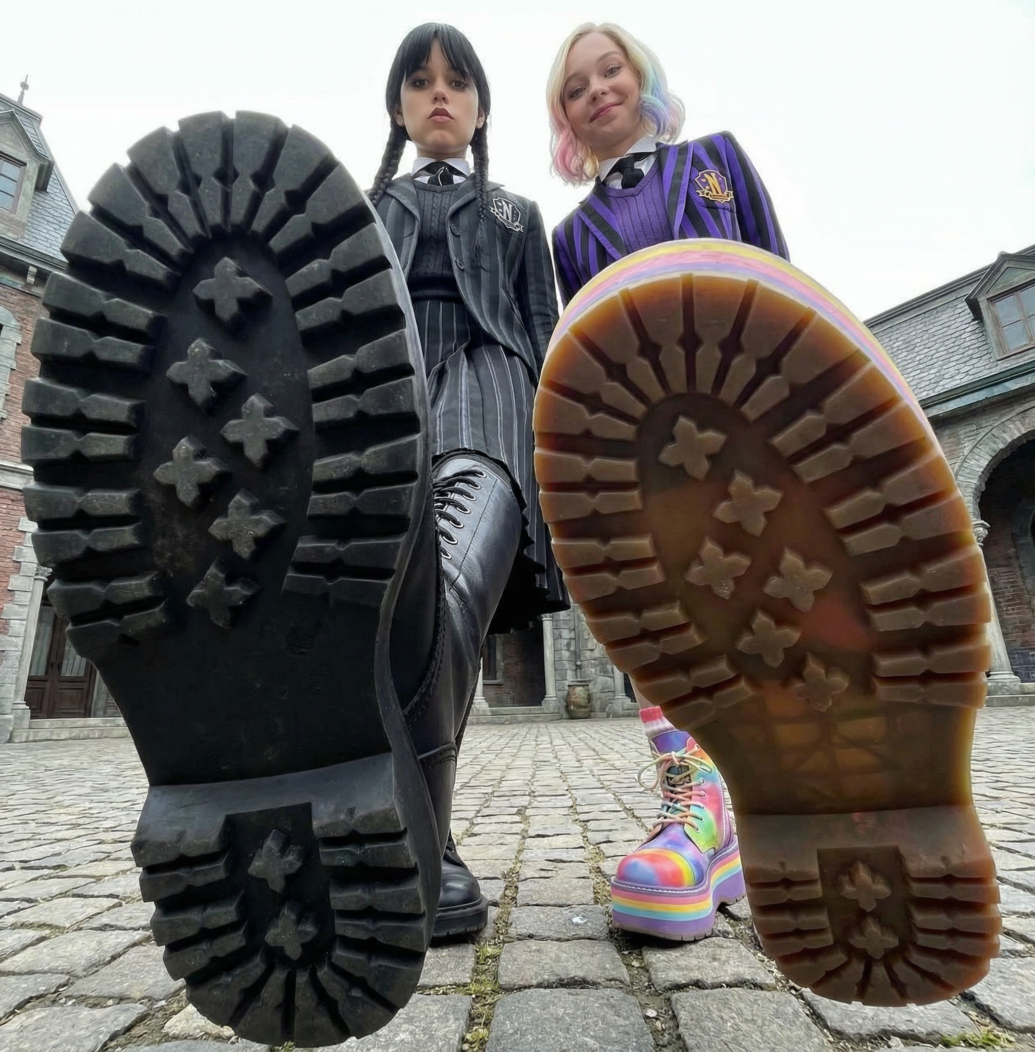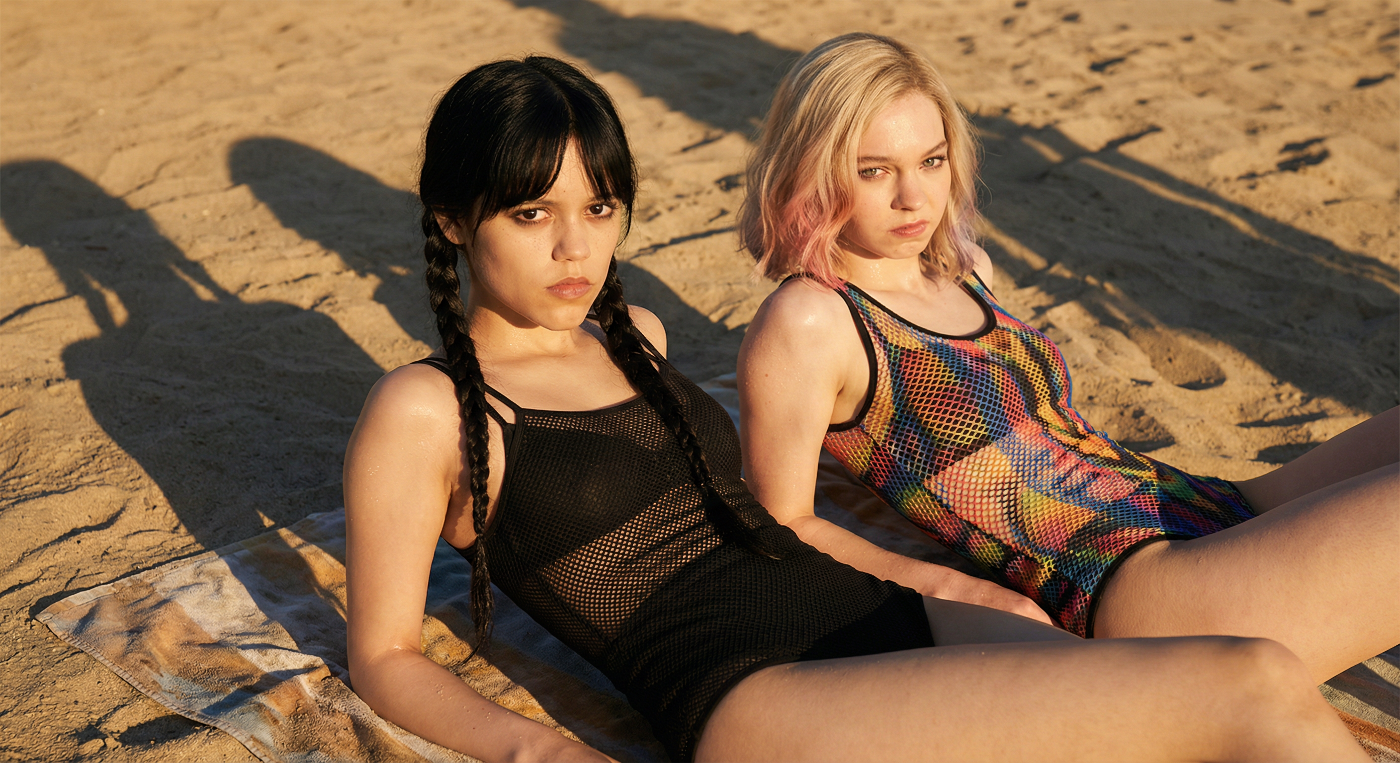 короче слушай сюда манька поясняю по хардкору. на пике у нас главные героини нетфликсовской параши для 14-летних девочек — «уэнсдей». черная — это дженна ортега которая весь сериал ходит с ебалом как будто ей под нос насрали а цветная — это ее соседка энид типичный жизнерадостный биомусор.