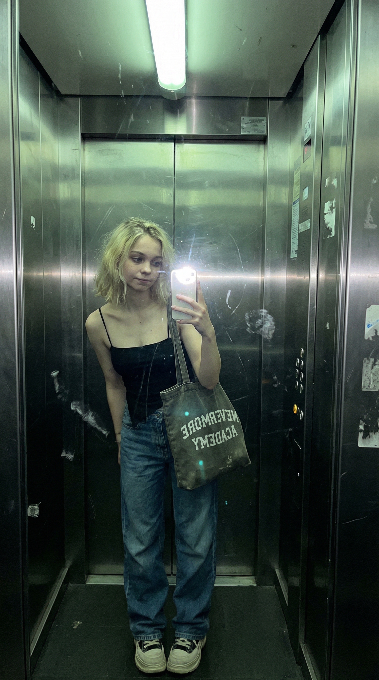 Обычные и ничем не примечательные фото ночью, без четкого сюжета и композиции — как случайный снимок. Фотография должна быть слегка размыта, с неравномерным освещением от солнечного света или ламп в комнате, что приводит к небольшой передержке. Ракурс должен быть неудобным, кадрирование — бессистемным, и в целом снимок должен вызывать ощущение нарочитой обыденности — как будто он был сделан случайно, пока вы доставали телефон из кармана.