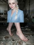 Можете Эльзатьку так? В вагоне электрички, босиком, ступни грязные, человек либо от 1 лица трогает её ноги (делает ей массаж), либо вид от 3 лица, но человека не видно.