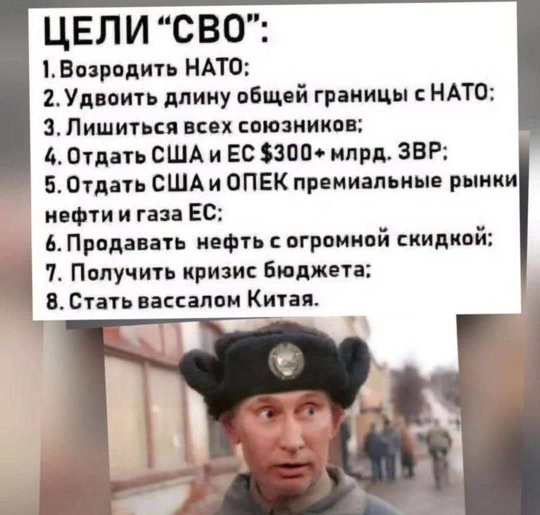 >>61931954 Нету так нету, успокойся. Значит, п. осознанно хотел затянуть войну с самой нищей страной Европы на четыре года, потратить несколько триллионов, отдать кучу денег нашим западным партнерам, проебать рынки углеводородов, добиться инфляции, ввода новых налогов, вступления двух стран в НАТО, блокировки интернета, мобилизации и прочих р. радостей. План такой вот был у нашего геестратега. Жалко, конечно, что он не планировал Украину за три дня брать. Может тогда сейчас и колбаса бы дешевле стоила.