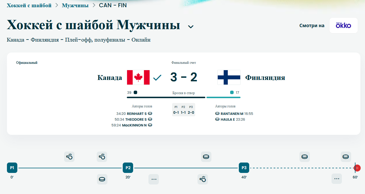 Совершенно прогнозируемый плейофф. Счёт тут тоже по составу, как и в большинстве матчей на этих ОИ, хоть и ожидал немного большего от сборной Словакии. Меня только один матч по-настоящему удивил - самый первый на турнире, где словаки обыграли финнов 4-1.