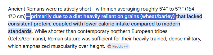 >>10562102 >я шарю в этом всем и привел кучу примеров которые ты проигнорил Ты нихуя ни в чём не шаришь, иначе бы не писал ересь по типу: >римляни на то время экспансий в германию самой сытой нацией были Рацион Римлян буквально состоял из ёбаных лепёшек и сухого хлеба, который они по утру обмакивали в вино. Германцы же жрали мясо и молоко как их кроманьонцы предки. Потому и рослые были, и красивые.