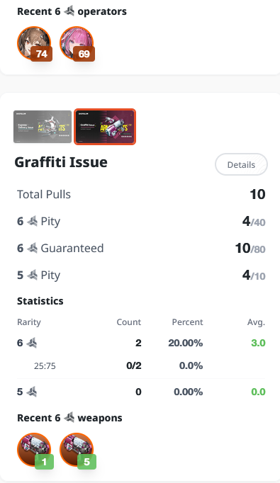 Что то смотрю я на эти пулы у вас. Наверное гачи всё таки не моё. Что в геншине первый коинфлип выйграл в сумеру и так все годы 160 с 1 четверкой в тенпуле. Тут ровно то же самое. Как вы это делаете я хуй знаю.