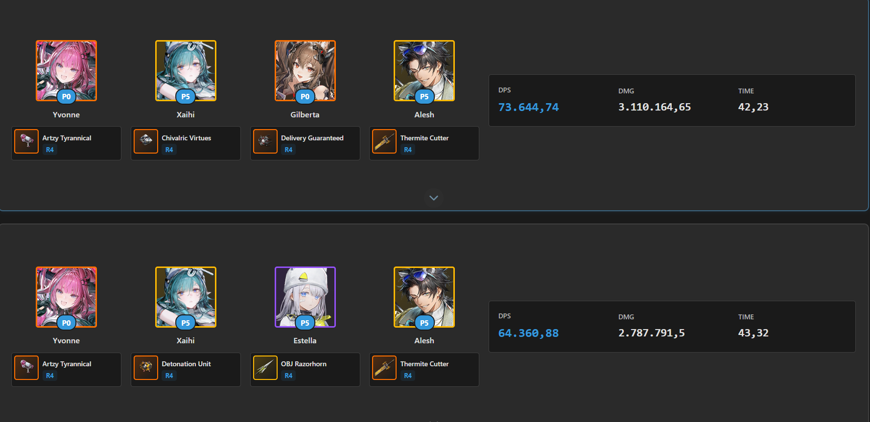 >>6475153 датафилд. Эти таймеры-пачки только на маникене(родане). Офк в какой дырке это может быть не так эффективно и лучше будет взять что другое, но чисто по цифрам по маникену - эти персы, с этим оружием и с этими шмотками топ.
