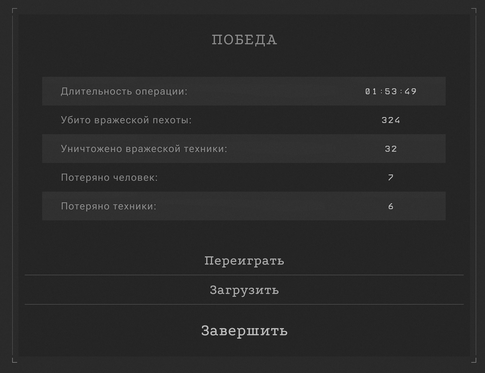 Почти получилось без потерь в первой миссии, но ебучий этот штаб который сначала щемят в одном месте, а потом нужно резко бежать в другое, забрал двоих.