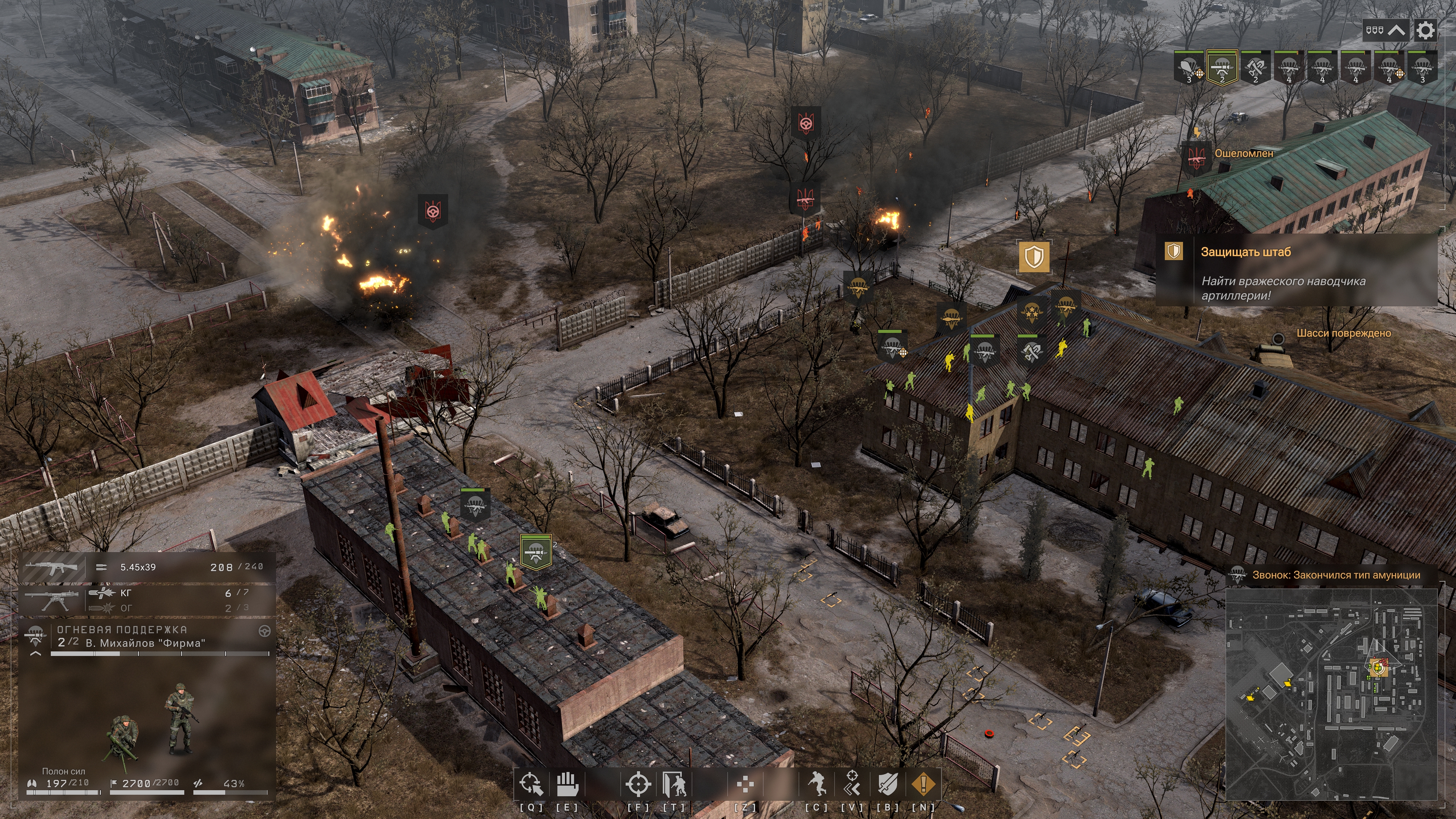 Просто в лучших традициях тех кого нельзя называть БТР выключают вылезая экипажниками во время пожара, он спокойно прогорает, они залезают обратно и стреляют пока не выбьешь им орудие. Сименс в 2 приема, БТРы только здоровее становятся от корда и РПГ. И что самое неприятное - я не могу нажать кнопочку выстрелить из РПГ чтобы окончательно сжечь поломанную броню, нужно жать атаку из всех стволов, потратить БК на пулемете и АК, чтобы даун с РПГ наконец-то выстрелил. Наверное эту фичу можно обойти, запретив использовать оружие отряду и оставив только РПГ, но потом я 100% забуду включить все обратно, и бесит жать 50 кнопочек вместо одной.