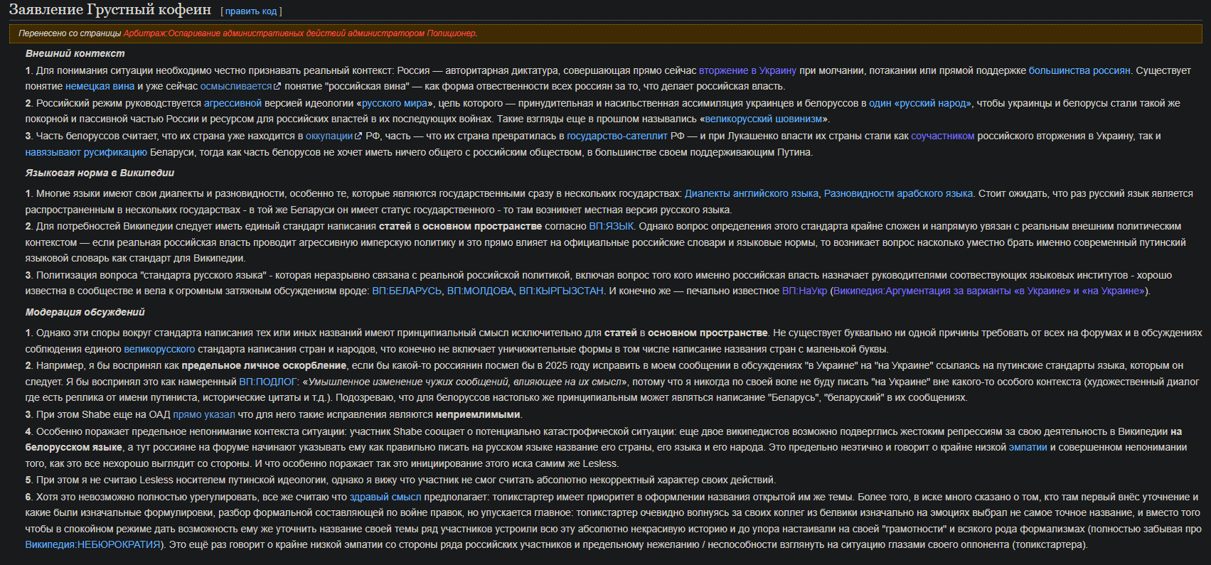 >>10132766 Неожиданно база. Хорошо бы вообще ограничить там сведения о текущих событиях на год-два, потому что иначе в статьях всегда будет прицельное говнометание кучки интересантов.